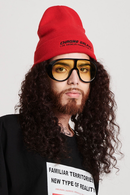 RED RIBBED EMBROIDERED LOGO BEANIE